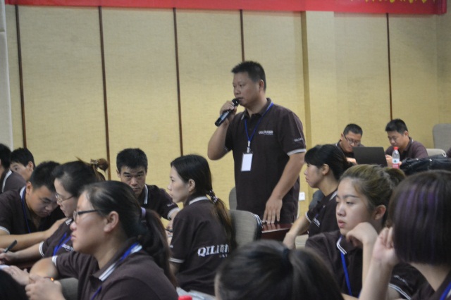 上午,邱總激情澎湃的從門店業績如何提升、標準化門店如何管理等方面,細化的介紹、引導學員從品牌形象、團隊組合、產品渠道、服務禮儀、銷售技巧、店面位置等多方面討論自己如何經營好自己的門店。學員們聽后,紛紛各抒己見。會場氣氛活躍,學員們積極響應。