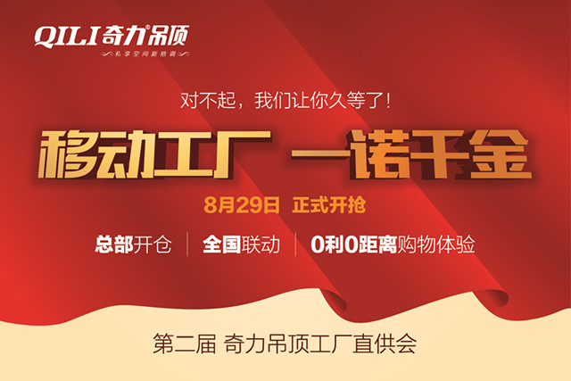 莊嚴(yán)地宣誓,昂揚(yáng)的斗志,火一樣的激情,破釜沉舟的魄力,第二屆奇力吊頂工廠直供會(huì)正式啟動(dòng)。為更好的回饋廣大消費(fèi)者的真誠(chéng)厚愛(ài),奇力全體家人們已經(jīng)準(zhǔn)備好了,這一次,拼了!
