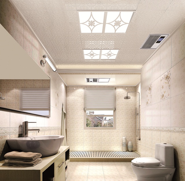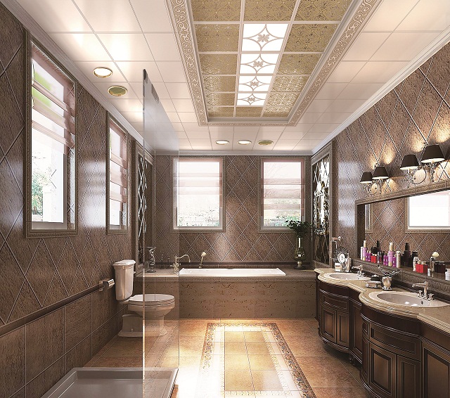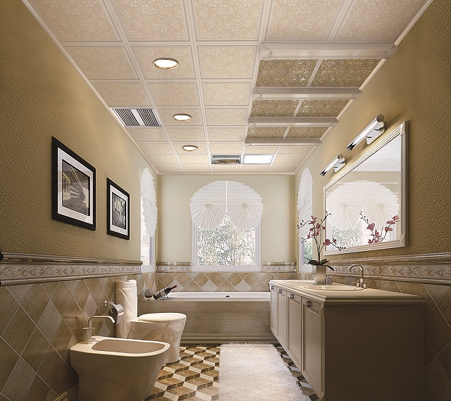 衛(wèi)浴間的水汽較重,所以,要選擇那些具有防水、防腐、防銹特點的材料做頂棚是很重要的。