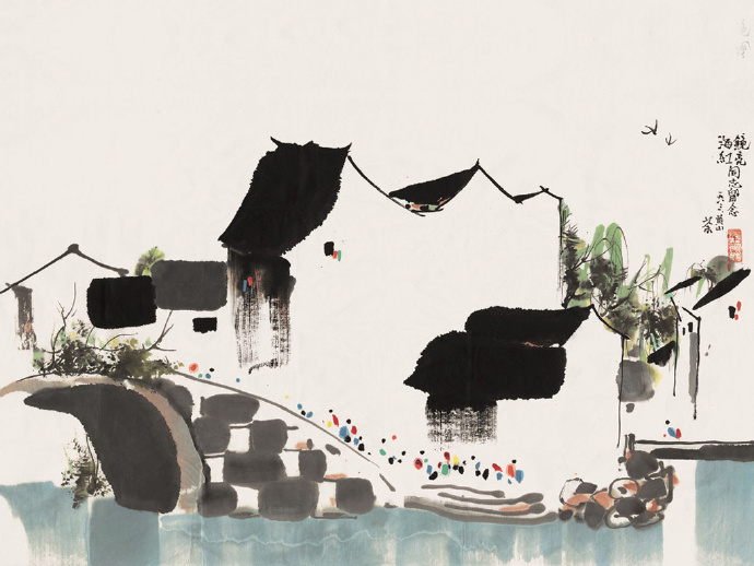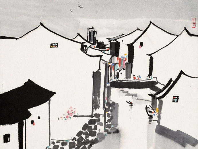 在吳冠中的作品中,充滿中國傳統水墨的神韻和西方現代表現手法的視覺沖擊力,他用畫來表現中國傳統的東方意蘊。