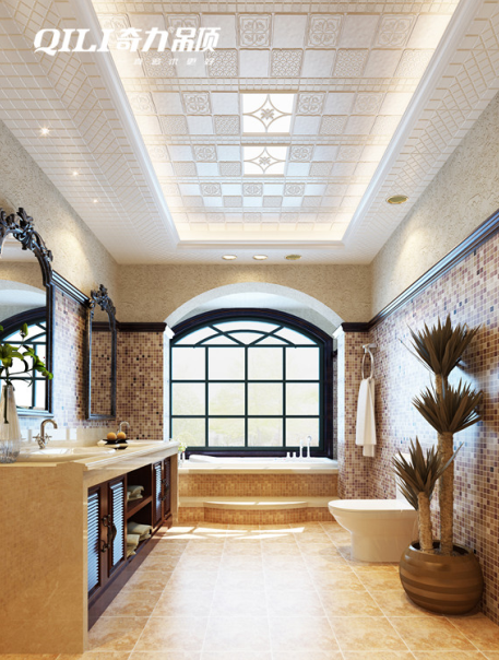 淺色似乎更符合現代人對于簡潔生活追求的心理特點,淺色系的扣板色調清新淡雅,一扇和煦陽光灑落在地上,整個衛浴空間柔和至極。