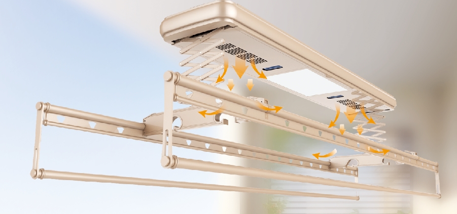 奇力智能晾衣架,一鍵操控,集風干、消毒殺菌、自動升降、照明等功能于一身,讓衣物如沐陽光般健康干爽。