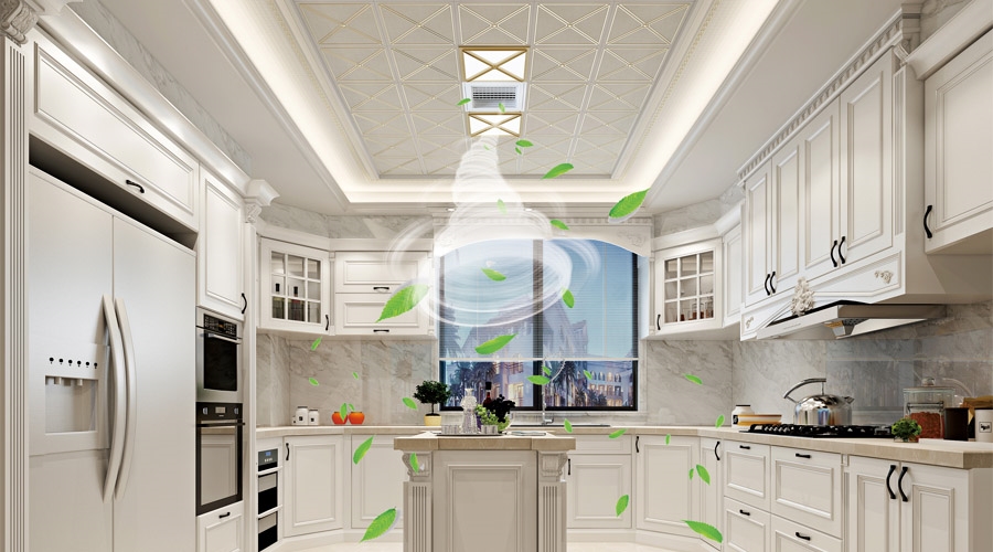 奇力智能涼霸,一臺安裝在集成吊頂上的“涼風(fēng)扇”,并且與吊頂做到一個平面上,不影響廚房整體美觀,通過導(dǎo)風(fēng)百葉轉(zhuǎn)動舒適送風(fēng)。