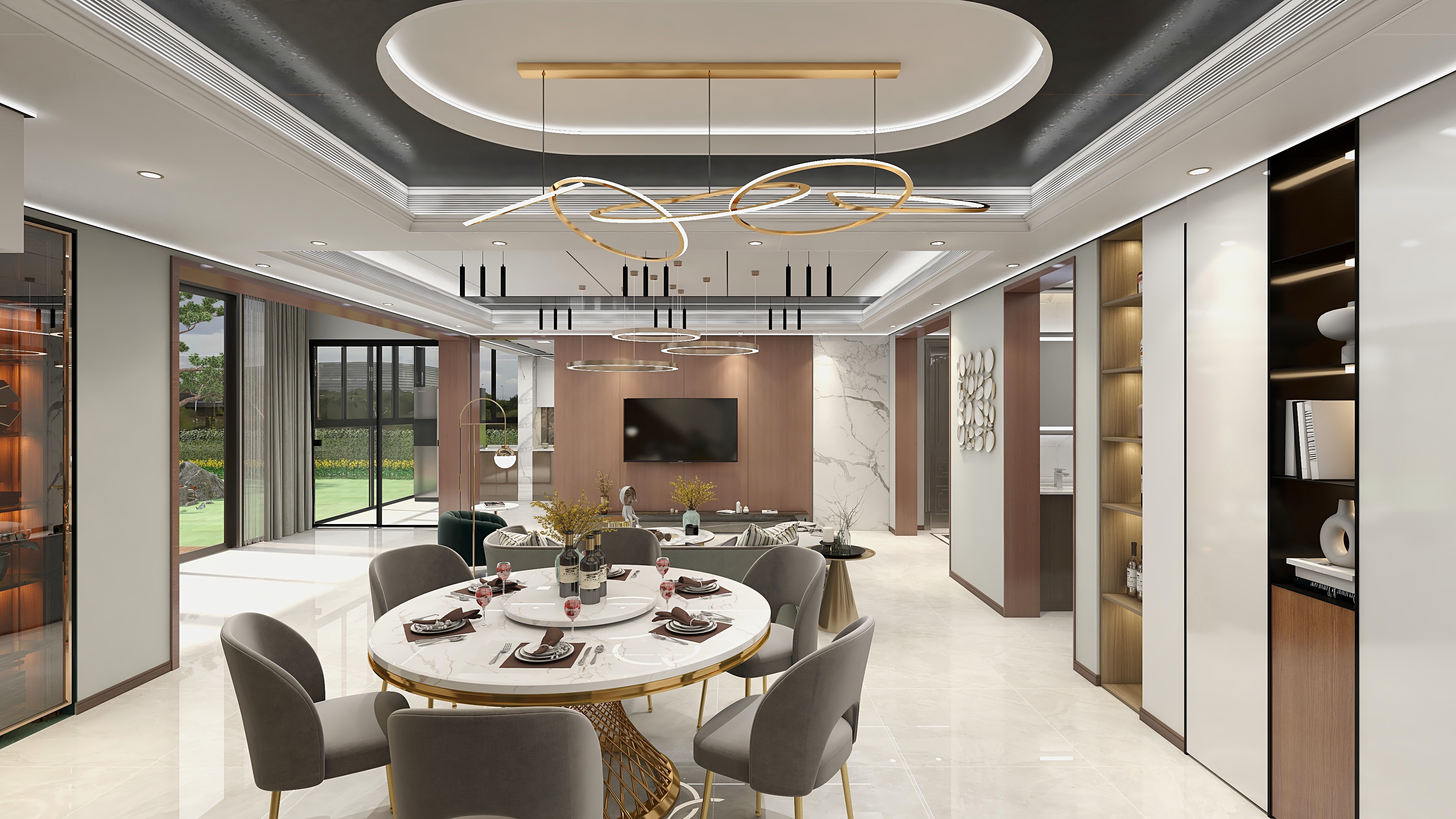 美味面前,煩惱不值一提。來一頓元氣滿滿的早餐再出發吧!橢圓形吊頂,氣質優雅,制造出視覺上的延展效果。