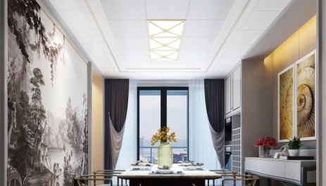 金屬元素在輕奢風格里面,幾乎是不可或缺的元素,從裝飾線條、燈具、家具、擺飾等,都會植入金屬元素,讓空間顯得更加精致。