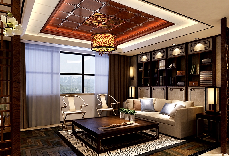 客廳蜂窩大板新中式